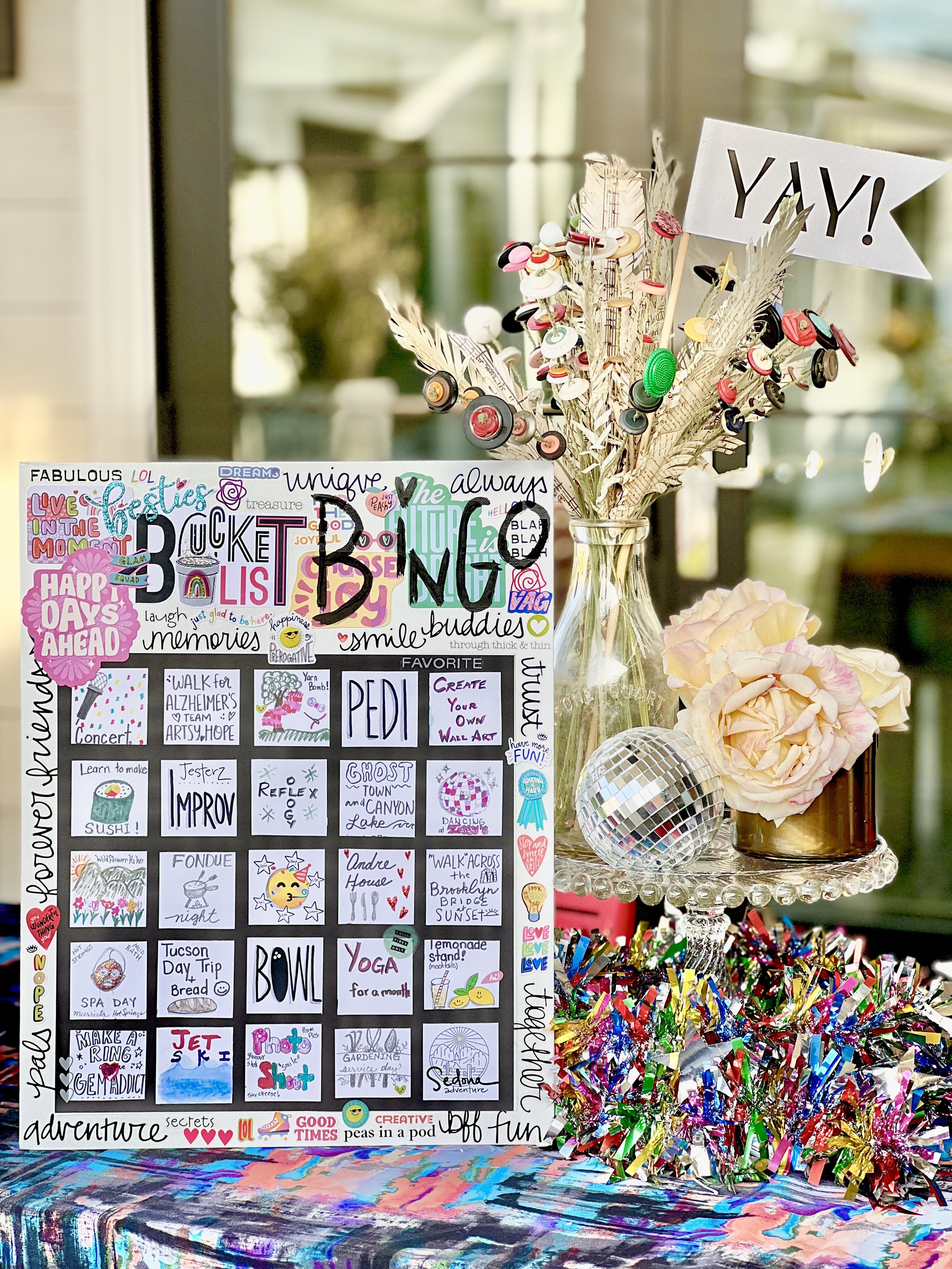 We’ll be walking you thru every yummy layer & messy mark of crafting your very own New Year’s Bucket List Bingo Vision Board on National Vision Board Day…YES, that’s a real thing ;-)